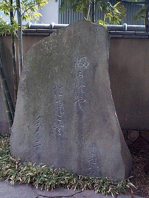 でも、この石蛙から「芭蕉愛好の」という形容詞を除くと、「小汚い壊れかけの石像」というほかなさそうな。信じるものは救われる。蛙が飛びこんで芭蕉が句を吟じた池のそばに置いてあった石蛙が、今自分の眼前にあるんだ、と信じてみれば、うん、見えてきた見えてきた。古池に石蛙を投げ落として、大きな水音とともに跳ね返る水しぶきに顔をしかめながら「古池や〜」と詠む芭蕉の姿。(間違ってますか。そうですか。)